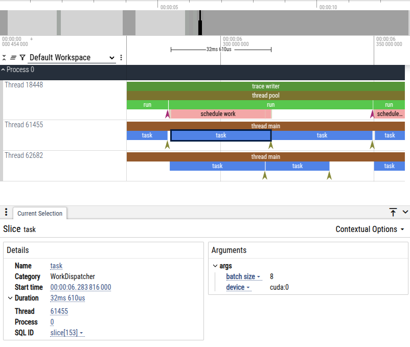 Work scheduling and dispatching can get complicated quickly as more sophisticated scheduling strategies are used, and asynchronous dispatching further builds upon such complexity. Benchmarking and profiling can give us a rough idea on whether the scheduler and dispatcher are coordinating as expected, by examining the wall time against theoretical bounds. However, such approach is less ideal especially in hybrid computing environments.